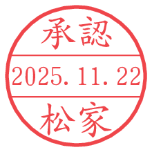 オプションの「電子透かし」をチェックし[生成]すると、見た目には分からないように、UNIXタイムスタンプを識別情報としてPNG形式の日付印に埋め込みます。 日付スタンプメーカーの使い方「部署」「名前」は最大8文字まで入力が可能です。「スタンプの色」を選択し、[生成]ボタン押下で印影画像が更新され、背景を透明に設定したPNG形式とPDF形式の印影画像がリンクからダウンロードできます。 オプションの「電子透かし」は、その性格上日付印ととても相性の良い付加サービスです。 別ページの「タイムスタンプと電子透かし」でも詳しく解説しますが、このオプションを追加することで、日付印が生成された日時に確かにその印が存在していることが証明されます。 ![]() 松家さんの電子印鑑が作れます。社内でのデータ書類閲覧確認用など、認印的な使い方のできる電子印鑑が作れます。 ![]() 古代文字で落款印が作れます。「落款スタンプメーカー」で作品を引き立たせる落款印が作れます。