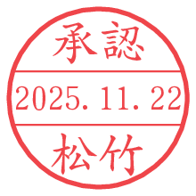 オプションの「電子透かし」をチェックし[生成]すると、見た目には分からないように、UNIXタイムスタンプを識別情報としてPNG形式の日付印に埋め込みます。 日付スタンプメーカーの使い方「部署」「名前」は最大8文字まで入力が可能です。「スタンプの色」を選択し、[生成]ボタン押下で印影画像が更新され、背景を透明に設定したPNG形式とPDF形式の印影画像がリンクからダウンロードできます。 オプションの「電子透かし」は、その性格上日付印ととても相性の良い付加サービスです。 別ページの「タイムスタンプと電子透かし」でも詳しく解説しますが、このオプションを追加することで、日付印が生成された日時に確かにその印が存在していることが証明されます。 ![]() 松竹さんの電子印鑑が作れます。社内でのデータ書類閲覧確認用など、認印的な使い方のできる電子印鑑が作れます。 ![]() 古代文字で落款印が作れます。「落款スタンプメーカー」で作品を引き立たせる落款印が作れます。