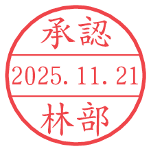 オプションの「電子透かし」をチェックし[生成]すると、見た目には分からないように、UNIXタイムスタンプを識別情報としてPNG形式の日付印に埋め込みます。 日付スタンプメーカーの使い方「部署」「名前」は最大8文字まで入力が可能です。「スタンプの色」を選択し、[生成]ボタン押下で印影画像が更新され、背景を透明に設定したPNG形式とPDF形式の印影画像がリンクからダウンロードできます。 オプションの「電子透かし」は、その性格上日付印ととても相性の良い付加サービスです。 別ページの「タイムスタンプと電子透かし」でも詳しく解説しますが、このオプションを追加することで、日付印が生成された日時に確かにその印が存在していることが証明されます。 ![]() 林部さんの電子印鑑が作れます。社内でのデータ書類閲覧確認用など、認印的な使い方のできる電子印鑑が作れます。 ![]() 古代文字で落款印が作れます。「落款スタンプメーカー」で作品を引き立たせる落款印が作れます。