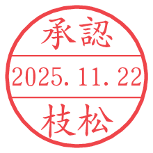 オプションの「電子透かし」をチェックし[生成]すると、見た目には分からないように、UNIXタイムスタンプを識別情報としてPNG形式の日付印に埋め込みます。 日付スタンプメーカーの使い方「部署」「名前」は最大8文字まで入力が可能です。「スタンプの色」を選択し、[生成]ボタン押下で印影画像が更新され、背景を透明に設定したPNG形式とPDF形式の印影画像がリンクからダウンロードできます。 オプションの「電子透かし」は、その性格上日付印ととても相性の良い付加サービスです。 別ページの「タイムスタンプと電子透かし」でも詳しく解説しますが、このオプションを追加することで、日付印が生成された日時に確かにその印が存在していることが証明されます。 ![]() 枝松さんの電子印鑑が作れます。社内でのデータ書類閲覧確認用など、認印的な使い方のできる電子印鑑が作れます。 ![]() 古代文字で落款印が作れます。「落款スタンプメーカー」で作品を引き立たせる落款印が作れます。