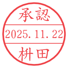 オプションの「電子透かし」をチェックし[生成]すると、見た目には分からないように、UNIXタイムスタンプを識別情報としてPNG形式の日付印に埋め込みます。 日付スタンプメーカーの使い方「部署」「名前」は最大8文字まで入力が可能です。「スタンプの色」を選択し、[生成]ボタン押下で印影画像が更新され、背景を透明に設定したPNG形式とPDF形式の印影画像がリンクからダウンロードできます。 オプションの「電子透かし」は、その性格上日付印ととても相性の良い付加サービスです。 別ページの「タイムスタンプと電子透かし」でも詳しく解説しますが、このオプションを追加することで、日付印が生成された日時に確かにその印が存在していることが証明されます。 ![]() 枡田さんの電子印鑑が作れます。社内でのデータ書類閲覧確認用など、認印的な使い方のできる電子印鑑が作れます。 ![]() 古代文字で落款印が作れます。「落款スタンプメーカー」で作品を引き立たせる落款印が作れます。