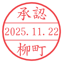 オプションの「電子透かし」をチェックし[生成]すると、見た目には分からないように、UNIXタイムスタンプを識別情報としてPNG形式の日付印に埋め込みます。 日付スタンプメーカーの使い方「部署」「名前」は最大8文字まで入力が可能です。「スタンプの色」を選択し、[生成]ボタン押下で印影画像が更新され、背景を透明に設定したPNG形式とPDF形式の印影画像がリンクからダウンロードできます。 オプションの「電子透かし」は、その性格上日付印ととても相性の良い付加サービスです。 別ページの「タイムスタンプと電子透かし」でも詳しく解説しますが、このオプションを追加することで、日付印が生成された日時に確かにその印が存在していることが証明されます。 ![]() 柳町さんの電子印鑑が作れます。社内でのデータ書類閲覧確認用など、認印的な使い方のできる電子印鑑が作れます。 ![]() 古代文字で落款印が作れます。「落款スタンプメーカー」で作品を引き立たせる落款印が作れます。