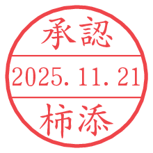 オプションの「電子透かし」をチェックし[生成]すると、見た目には分からないように、UNIXタイムスタンプを識別情報としてPNG形式の日付印に埋め込みます。 日付スタンプメーカーの使い方「部署」「名前」は最大8文字まで入力が可能です。「スタンプの色」を選択し、[生成]ボタン押下で印影画像が更新され、背景を透明に設定したPNG形式とPDF形式の印影画像がリンクからダウンロードできます。 オプションの「電子透かし」は、その性格上日付印ととても相性の良い付加サービスです。 別ページの「タイムスタンプと電子透かし」でも詳しく解説しますが、このオプションを追加することで、日付印が生成された日時に確かにその印が存在していることが証明されます。 ![]() 柿添さんの電子印鑑が作れます。社内でのデータ書類閲覧確認用など、認印的な使い方のできる電子印鑑が作れます。 ![]() 古代文字で落款印が作れます。「落款スタンプメーカー」で作品を引き立たせる落款印が作れます。