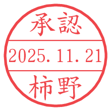 オプションの「電子透かし」をチェックし[生成]すると、見た目には分からないように、UNIXタイムスタンプを識別情報としてPNG形式の日付印に埋め込みます。 日付スタンプメーカーの使い方「部署」「名前」は最大8文字まで入力が可能です。「スタンプの色」を選択し、[生成]ボタン押下で印影画像が更新され、背景を透明に設定したPNG形式とPDF形式の印影画像がリンクからダウンロードできます。 オプションの「電子透かし」は、その性格上日付印ととても相性の良い付加サービスです。 別ページの「タイムスタンプと電子透かし」でも詳しく解説しますが、このオプションを追加することで、日付印が生成された日時に確かにその印が存在していることが証明されます。 ![]() 柿野さんの電子印鑑が作れます。社内でのデータ書類閲覧確認用など、認印的な使い方のできる電子印鑑が作れます。 ![]() 古代文字で落款印が作れます。「落款スタンプメーカー」で作品を引き立たせる落款印が作れます。