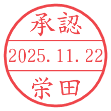 オプションの「電子透かし」をチェックし[生成]すると、見た目には分からないように、UNIXタイムスタンプを識別情報としてPNG形式の日付印に埋め込みます。 日付スタンプメーカーの使い方「部署」「名前」は最大8文字まで入力が可能です。「スタンプの色」を選択し、[生成]ボタン押下で印影画像が更新され、背景を透明に設定したPNG形式とPDF形式の印影画像がリンクからダウンロードできます。 オプションの「電子透かし」は、その性格上日付印ととても相性の良い付加サービスです。 別ページの「タイムスタンプと電子透かし」でも詳しく解説しますが、このオプションを追加することで、日付印が生成された日時に確かにその印が存在していることが証明されます。 ![]() 栄田さんの電子印鑑が作れます。社内でのデータ書類閲覧確認用など、認印的な使い方のできる電子印鑑が作れます。 ![]() 古代文字で落款印が作れます。「落款スタンプメーカー」で作品を引き立たせる落款印が作れます。