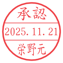 オプションの「電子透かし」をチェックし[生成]すると、見た目には分からないように、UNIXタイムスタンプを識別情報としてPNG形式の日付印に埋め込みます。 日付スタンプメーカーの使い方「部署」「名前」は最大8文字まで入力が可能です。「スタンプの色」を選択し、[生成]ボタン押下で印影画像が更新され、背景を透明に設定したPNG形式とPDF形式の印影画像がリンクからダウンロードできます。 オプションの「電子透かし」は、その性格上日付印ととても相性の良い付加サービスです。 別ページの「タイムスタンプと電子透かし」でも詳しく解説しますが、このオプションを追加することで、日付印が生成された日時に確かにその印が存在していることが証明されます。 ![]() 栄野元さんの電子印鑑が作れます。社内でのデータ書類閲覧確認用など、認印的な使い方のできる電子印鑑が作れます。 ![]() 古代文字で落款印が作れます。「落款スタンプメーカー」で作品を引き立たせる落款印が作れます。