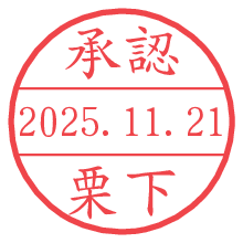 オプションの「電子透かし」をチェックし[生成]すると、見た目には分からないように、UNIXタイムスタンプを識別情報としてPNG形式の日付印に埋め込みます。 日付スタンプメーカーの使い方「部署」「名前」は最大8文字まで入力が可能です。「スタンプの色」を選択し、[生成]ボタン押下で印影画像が更新され、背景を透明に設定したPNG形式とPDF形式の印影画像がリンクからダウンロードできます。 オプションの「電子透かし」は、その性格上日付印ととても相性の良い付加サービスです。 別ページの「タイムスタンプと電子透かし」でも詳しく解説しますが、このオプションを追加することで、日付印が生成された日時に確かにその印が存在していることが証明されます。 ![]() 栗下さんの電子印鑑が作れます。社内でのデータ書類閲覧確認用など、認印的な使い方のできる電子印鑑が作れます。 ![]() 古代文字で落款印が作れます。「落款スタンプメーカー」で作品を引き立たせる落款印が作れます。
