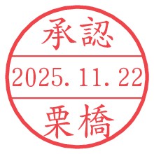 オプションの「電子透かし」をチェックし[生成]すると、見た目には分からないように、UNIXタイムスタンプを識別情報としてPNG形式の日付印に埋め込みます。 日付スタンプメーカーの使い方「部署」「名前」は最大8文字まで入力が可能です。「スタンプの色」を選択し、[生成]ボタン押下で印影画像が更新され、背景を透明に設定したPNG形式とPDF形式の印影画像がリンクからダウンロードできます。 オプションの「電子透かし」は、その性格上日付印ととても相性の良い付加サービスです。 別ページの「タイムスタンプと電子透かし」でも詳しく解説しますが、このオプションを追加することで、日付印が生成された日時に確かにその印が存在していることが証明されます。 ![]() 栗橋さんの電子印鑑が作れます。社内でのデータ書類閲覧確認用など、認印的な使い方のできる電子印鑑が作れます。 ![]() 古代文字で落款印が作れます。「落款スタンプメーカー」で作品を引き立たせる落款印が作れます。