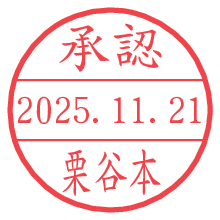 オプションの「電子透かし」をチェックし[生成]すると、見た目には分からないように、UNIXタイムスタンプを識別情報としてPNG形式の日付印に埋め込みます。 日付スタンプメーカーの使い方「部署」「名前」は最大8文字まで入力が可能です。「スタンプの色」を選択し、[生成]ボタン押下で印影画像が更新され、背景を透明に設定したPNG形式とPDF形式の印影画像がリンクからダウンロードできます。 オプションの「電子透かし」は、その性格上日付印ととても相性の良い付加サービスです。 別ページの「タイムスタンプと電子透かし」でも詳しく解説しますが、このオプションを追加することで、日付印が生成された日時に確かにその印が存在していることが証明されます。 ![]() 栗谷本さんの電子印鑑が作れます。社内でのデータ書類閲覧確認用など、認印的な使い方のできる電子印鑑が作れます。 ![]() 古代文字で落款印が作れます。「落款スタンプメーカー」で作品を引き立たせる落款印が作れます。