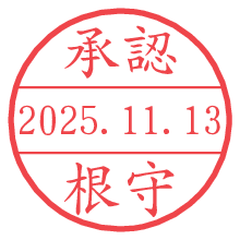 オプションの「電子透かし」をチェックし[生成]すると、見た目には分からないように、UNIXタイムスタンプを識別情報としてPNG形式の日付印に埋め込みます。 日付スタンプメーカーの使い方「部署」「名前」は最大8文字まで入力が可能です。「スタンプの色」を選択し、[生成]ボタン押下で印影画像が更新され、背景を透明に設定したPNG形式とPDF形式の印影画像がリンクからダウンロードできます。 オプションの「電子透かし」は、その性格上日付印ととても相性の良い付加サービスです。 別ページの「タイムスタンプと電子透かし」でも詳しく解説しますが、このオプションを追加することで、日付印が生成された日時に確かにその印が存在していることが証明されます。 ![]() 根守さんの電子印鑑が作れます。社内でのデータ書類閲覧確認用など、認印的な使い方のできる電子印鑑が作れます。 ![]() 古代文字で落款印が作れます。「落款スタンプメーカー」で作品を引き立たせる落款印が作れます。