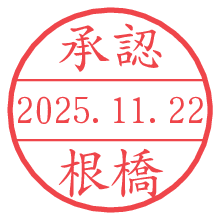 オプションの「電子透かし」をチェックし[生成]すると、見た目には分からないように、UNIXタイムスタンプを識別情報としてPNG形式の日付印に埋め込みます。 日付スタンプメーカーの使い方「部署」「名前」は最大8文字まで入力が可能です。「スタンプの色」を選択し、[生成]ボタン押下で印影画像が更新され、背景を透明に設定したPNG形式とPDF形式の印影画像がリンクからダウンロードできます。 オプションの「電子透かし」は、その性格上日付印ととても相性の良い付加サービスです。 別ページの「タイムスタンプと電子透かし」でも詳しく解説しますが、このオプションを追加することで、日付印が生成された日時に確かにその印が存在していることが証明されます。 ![]() 根橋さんの電子印鑑が作れます。社内でのデータ書類閲覧確認用など、認印的な使い方のできる電子印鑑が作れます。 ![]() 古代文字で落款印が作れます。「落款スタンプメーカー」で作品を引き立たせる落款印が作れます。