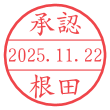 オプションの「電子透かし」をチェックし[生成]すると、見た目には分からないように、UNIXタイムスタンプを識別情報としてPNG形式の日付印に埋め込みます。 日付スタンプメーカーの使い方「部署」「名前」は最大8文字まで入力が可能です。「スタンプの色」を選択し、[生成]ボタン押下で印影画像が更新され、背景を透明に設定したPNG形式とPDF形式の印影画像がリンクからダウンロードできます。 オプションの「電子透かし」は、その性格上日付印ととても相性の良い付加サービスです。 別ページの「タイムスタンプと電子透かし」でも詳しく解説しますが、このオプションを追加することで、日付印が生成された日時に確かにその印が存在していることが証明されます。 ![]() 根田さんの電子印鑑が作れます。社内でのデータ書類閲覧確認用など、認印的な使い方のできる電子印鑑が作れます。 ![]() 古代文字で落款印が作れます。「落款スタンプメーカー」で作品を引き立たせる落款印が作れます。
