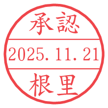 オプションの「電子透かし」をチェックし[生成]すると、見た目には分からないように、UNIXタイムスタンプを識別情報としてPNG形式の日付印に埋め込みます。 日付スタンプメーカーの使い方「部署」「名前」は最大8文字まで入力が可能です。「スタンプの色」を選択し、[生成]ボタン押下で印影画像が更新され、背景を透明に設定したPNG形式とPDF形式の印影画像がリンクからダウンロードできます。 オプションの「電子透かし」は、その性格上日付印ととても相性の良い付加サービスです。 別ページの「タイムスタンプと電子透かし」でも詳しく解説しますが、このオプションを追加することで、日付印が生成された日時に確かにその印が存在していることが証明されます。 ![]() 根里さんの電子印鑑が作れます。社内でのデータ書類閲覧確認用など、認印的な使い方のできる電子印鑑が作れます。 ![]() 古代文字で落款印が作れます。「落款スタンプメーカー」で作品を引き立たせる落款印が作れます。