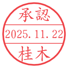 オプションの「電子透かし」をチェックし[生成]すると、見た目には分からないように、UNIXタイムスタンプを識別情報としてPNG形式の日付印に埋め込みます。 日付スタンプメーカーの使い方「部署」「名前」は最大8文字まで入力が可能です。「スタンプの色」を選択し、[生成]ボタン押下で印影画像が更新され、背景を透明に設定したPNG形式とPDF形式の印影画像がリンクからダウンロードできます。 オプションの「電子透かし」は、その性格上日付印ととても相性の良い付加サービスです。 別ページの「タイムスタンプと電子透かし」でも詳しく解説しますが、このオプションを追加することで、日付印が生成された日時に確かにその印が存在していることが証明されます。 ![]() 桂木さんの電子印鑑が作れます。社内でのデータ書類閲覧確認用など、認印的な使い方のできる電子印鑑が作れます。 ![]() 古代文字で落款印が作れます。「落款スタンプメーカー」で作品を引き立たせる落款印が作れます。
