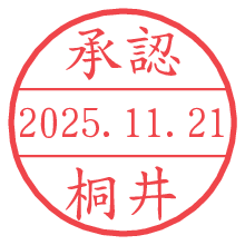 オプションの「電子透かし」をチェックし[生成]すると、見た目には分からないように、UNIXタイムスタンプを識別情報としてPNG形式の日付印に埋め込みます。 日付スタンプメーカーの使い方「部署」「名前」は最大8文字まで入力が可能です。「スタンプの色」を選択し、[生成]ボタン押下で印影画像が更新され、背景を透明に設定したPNG形式とPDF形式の印影画像がリンクからダウンロードできます。 オプションの「電子透かし」は、その性格上日付印ととても相性の良い付加サービスです。 別ページの「タイムスタンプと電子透かし」でも詳しく解説しますが、このオプションを追加することで、日付印が生成された日時に確かにその印が存在していることが証明されます。 ![]() 桐井さんの電子印鑑が作れます。社内でのデータ書類閲覧確認用など、認印的な使い方のできる電子印鑑が作れます。 ![]() 古代文字で落款印が作れます。「落款スタンプメーカー」で作品を引き立たせる落款印が作れます。