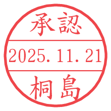 オプションの「電子透かし」をチェックし[生成]すると、見た目には分からないように、UNIXタイムスタンプを識別情報としてPNG形式の日付印に埋め込みます。 日付スタンプメーカーの使い方「部署」「名前」は最大8文字まで入力が可能です。「スタンプの色」を選択し、[生成]ボタン押下で印影画像が更新され、背景を透明に設定したPNG形式とPDF形式の印影画像がリンクからダウンロードできます。 オプションの「電子透かし」は、その性格上日付印ととても相性の良い付加サービスです。 別ページの「タイムスタンプと電子透かし」でも詳しく解説しますが、このオプションを追加することで、日付印が生成された日時に確かにその印が存在していることが証明されます。 ![]() 桐島さんの電子印鑑が作れます。社内でのデータ書類閲覧確認用など、認印的な使い方のできる電子印鑑が作れます。 ![]() 古代文字で落款印が作れます。「落款スタンプメーカー」で作品を引き立たせる落款印が作れます。