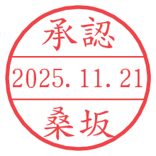 オプションの「電子透かし」をチェックし[生成]すると、見た目には分からないように、UNIXタイムスタンプを識別情報としてPNG形式の日付印に埋め込みます。 日付スタンプメーカーの使い方「部署」「名前」は最大8文字まで入力が可能です。「スタンプの色」を選択し、[生成]ボタン押下で印影画像が更新され、背景を透明に設定したPNG形式とPDF形式の印影画像がリンクからダウンロードできます。 オプションの「電子透かし」は、その性格上日付印ととても相性の良い付加サービスです。 別ページの「タイムスタンプと電子透かし」でも詳しく解説しますが、このオプションを追加することで、日付印が生成された日時に確かにその印が存在していることが証明されます。 ![]() 桑坂さんの電子印鑑が作れます。社内でのデータ書類閲覧確認用など、認印的な使い方のできる電子印鑑が作れます。 ![]() 古代文字で落款印が作れます。「落款スタンプメーカー」で作品を引き立たせる落款印が作れます。