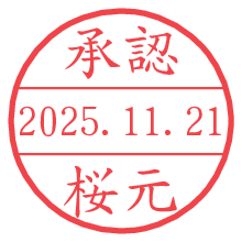 オプションの「電子透かし」をチェックし[生成]すると、見た目には分からないように、UNIXタイムスタンプを識別情報としてPNG形式の日付印に埋め込みます。 日付スタンプメーカーの使い方「部署」「名前」は最大8文字まで入力が可能です。「スタンプの色」を選択し、[生成]ボタン押下で印影画像が更新され、背景を透明に設定したPNG形式とPDF形式の印影画像がリンクからダウンロードできます。 オプションの「電子透かし」は、その性格上日付印ととても相性の良い付加サービスです。 別ページの「タイムスタンプと電子透かし」でも詳しく解説しますが、このオプションを追加することで、日付印が生成された日時に確かにその印が存在していることが証明されます。 ![]() 桜元さんの電子印鑑が作れます。社内でのデータ書類閲覧確認用など、認印的な使い方のできる電子印鑑が作れます。 ![]() 古代文字で落款印が作れます。「落款スタンプメーカー」で作品を引き立たせる落款印が作れます。