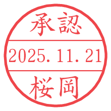 オプションの「電子透かし」をチェックし[生成]すると、見た目には分からないように、UNIXタイムスタンプを識別情報としてPNG形式の日付印に埋め込みます。 日付スタンプメーカーの使い方「部署」「名前」は最大8文字まで入力が可能です。「スタンプの色」を選択し、[生成]ボタン押下で印影画像が更新され、背景を透明に設定したPNG形式とPDF形式の印影画像がリンクからダウンロードできます。 オプションの「電子透かし」は、その性格上日付印ととても相性の良い付加サービスです。 別ページの「タイムスタンプと電子透かし」でも詳しく解説しますが、このオプションを追加することで、日付印が生成された日時に確かにその印が存在していることが証明されます。 ![]() 桜岡さんの電子印鑑が作れます。社内でのデータ書類閲覧確認用など、認印的な使い方のできる電子印鑑が作れます。 ![]() 古代文字で落款印が作れます。「落款スタンプメーカー」で作品を引き立たせる落款印が作れます。