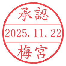 オプションの「電子透かし」をチェックし[生成]すると、見た目には分からないように、UNIXタイムスタンプを識別情報としてPNG形式の日付印に埋め込みます。 日付スタンプメーカーの使い方「部署」「名前」は最大8文字まで入力が可能です。「スタンプの色」を選択し、[生成]ボタン押下で印影画像が更新され、背景を透明に設定したPNG形式とPDF形式の印影画像がリンクからダウンロードできます。 オプションの「電子透かし」は、その性格上日付印ととても相性の良い付加サービスです。 別ページの「タイムスタンプと電子透かし」でも詳しく解説しますが、このオプションを追加することで、日付印が生成された日時に確かにその印が存在していることが証明されます。 ![]() 梅宮さんの電子印鑑が作れます。社内でのデータ書類閲覧確認用など、認印的な使い方のできる電子印鑑が作れます。 ![]() 古代文字で落款印が作れます。「落款スタンプメーカー」で作品を引き立たせる落款印が作れます。