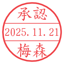 オプションの「電子透かし」をチェックし[生成]すると、見た目には分からないように、UNIXタイムスタンプを識別情報としてPNG形式の日付印に埋め込みます。 日付スタンプメーカーの使い方「部署」「名前」は最大8文字まで入力が可能です。「スタンプの色」を選択し、[生成]ボタン押下で印影画像が更新され、背景を透明に設定したPNG形式とPDF形式の印影画像がリンクからダウンロードできます。 オプションの「電子透かし」は、その性格上日付印ととても相性の良い付加サービスです。 別ページの「タイムスタンプと電子透かし」でも詳しく解説しますが、このオプションを追加することで、日付印が生成された日時に確かにその印が存在していることが証明されます。 ![]() 梅森さんの電子印鑑が作れます。社内でのデータ書類閲覧確認用など、認印的な使い方のできる電子印鑑が作れます。 ![]() 古代文字で落款印が作れます。「落款スタンプメーカー」で作品を引き立たせる落款印が作れます。