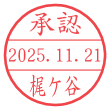 オプションの「電子透かし」をチェックし[生成]すると、見た目には分からないように、UNIXタイムスタンプを識別情報としてPNG形式の日付印に埋め込みます。 日付スタンプメーカーの使い方「部署」「名前」は最大8文字まで入力が可能です。「スタンプの色」を選択し、[生成]ボタン押下で印影画像が更新され、背景を透明に設定したPNG形式とPDF形式の印影画像がリンクからダウンロードできます。 オプションの「電子透かし」は、その性格上日付印ととても相性の良い付加サービスです。 別ページの「タイムスタンプと電子透かし」でも詳しく解説しますが、このオプションを追加することで、日付印が生成された日時に確かにその印が存在していることが証明されます。 ![]() 梶ケ谷さんの電子印鑑が作れます。社内でのデータ書類閲覧確認用など、認印的な使い方のできる電子印鑑が作れます。 ![]() 古代文字で落款印が作れます。「落款スタンプメーカー」で作品を引き立たせる落款印が作れます。