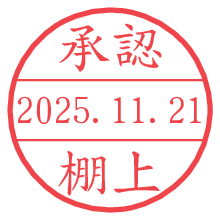 オプションの「電子透かし」をチェックし[生成]すると、見た目には分からないように、UNIXタイムスタンプを識別情報としてPNG形式の日付印に埋め込みます。 日付スタンプメーカーの使い方「部署」「名前」は最大8文字まで入力が可能です。「スタンプの色」を選択し、[生成]ボタン押下で印影画像が更新され、背景を透明に設定したPNG形式とPDF形式の印影画像がリンクからダウンロードできます。 オプションの「電子透かし」は、その性格上日付印ととても相性の良い付加サービスです。 別ページの「タイムスタンプと電子透かし」でも詳しく解説しますが、このオプションを追加することで、日付印が生成された日時に確かにその印が存在していることが証明されます。 ![]() 棚上さんの電子印鑑が作れます。社内でのデータ書類閲覧確認用など、認印的な使い方のできる電子印鑑が作れます。 ![]() 古代文字で落款印が作れます。「落款スタンプメーカー」で作品を引き立たせる落款印が作れます。