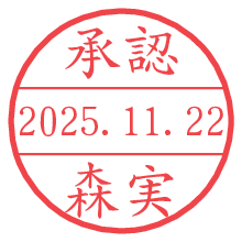 オプションの「電子透かし」をチェックし[生成]すると、見た目には分からないように、UNIXタイムスタンプを識別情報としてPNG形式の日付印に埋め込みます。 日付スタンプメーカーの使い方「部署」「名前」は最大8文字まで入力が可能です。「スタンプの色」を選択し、[生成]ボタン押下で印影画像が更新され、背景を透明に設定したPNG形式とPDF形式の印影画像がリンクからダウンロードできます。 オプションの「電子透かし」は、その性格上日付印ととても相性の良い付加サービスです。 別ページの「タイムスタンプと電子透かし」でも詳しく解説しますが、このオプションを追加することで、日付印が生成された日時に確かにその印が存在していることが証明されます。 ![]() 森実さんの電子印鑑が作れます。社内でのデータ書類閲覧確認用など、認印的な使い方のできる電子印鑑が作れます。 ![]() 古代文字で落款印が作れます。「落款スタンプメーカー」で作品を引き立たせる落款印が作れます。