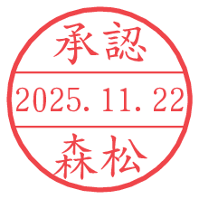 オプションの「電子透かし」をチェックし[生成]すると、見た目には分からないように、UNIXタイムスタンプを識別情報としてPNG形式の日付印に埋め込みます。 日付スタンプメーカーの使い方「部署」「名前」は最大8文字まで入力が可能です。「スタンプの色」を選択し、[生成]ボタン押下で印影画像が更新され、背景を透明に設定したPNG形式とPDF形式の印影画像がリンクからダウンロードできます。 オプションの「電子透かし」は、その性格上日付印ととても相性の良い付加サービスです。 別ページの「タイムスタンプと電子透かし」でも詳しく解説しますが、このオプションを追加することで、日付印が生成された日時に確かにその印が存在していることが証明されます。 ![]() 森松さんの電子印鑑が作れます。社内でのデータ書類閲覧確認用など、認印的な使い方のできる電子印鑑が作れます。 ![]() 古代文字で落款印が作れます。「落款スタンプメーカー」で作品を引き立たせる落款印が作れます。