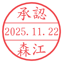オプションの「電子透かし」をチェックし[生成]すると、見た目には分からないように、UNIXタイムスタンプを識別情報としてPNG形式の日付印に埋め込みます。 日付スタンプメーカーの使い方「部署」「名前」は最大8文字まで入力が可能です。「スタンプの色」を選択し、[生成]ボタン押下で印影画像が更新され、背景を透明に設定したPNG形式とPDF形式の印影画像がリンクからダウンロードできます。 オプションの「電子透かし」は、その性格上日付印ととても相性の良い付加サービスです。 別ページの「タイムスタンプと電子透かし」でも詳しく解説しますが、このオプションを追加することで、日付印が生成された日時に確かにその印が存在していることが証明されます。 ![]() 森江さんの電子印鑑が作れます。社内でのデータ書類閲覧確認用など、認印的な使い方のできる電子印鑑が作れます。 ![]() 古代文字で落款印が作れます。「落款スタンプメーカー」で作品を引き立たせる落款印が作れます。