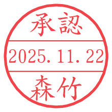 オプションの「電子透かし」をチェックし[生成]すると、見た目には分からないように、UNIXタイムスタンプを識別情報としてPNG形式の日付印に埋め込みます。 日付スタンプメーカーの使い方「部署」「名前」は最大8文字まで入力が可能です。「スタンプの色」を選択し、[生成]ボタン押下で印影画像が更新され、背景を透明に設定したPNG形式とPDF形式の印影画像がリンクからダウンロードできます。 オプションの「電子透かし」は、その性格上日付印ととても相性の良い付加サービスです。 別ページの「タイムスタンプと電子透かし」でも詳しく解説しますが、このオプションを追加することで、日付印が生成された日時に確かにその印が存在していることが証明されます。 ![]() 森竹さんの電子印鑑が作れます。社内でのデータ書類閲覧確認用など、認印的な使い方のできる電子印鑑が作れます。 ![]() 古代文字で落款印が作れます。「落款スタンプメーカー」で作品を引き立たせる落款印が作れます。