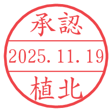 オプションの「電子透かし」をチェックし[生成]すると、見た目には分からないように、UNIXタイムスタンプを識別情報としてPNG形式の日付印に埋め込みます。 日付スタンプメーカーの使い方「部署」「名前」は最大8文字まで入力が可能です。「スタンプの色」を選択し、[生成]ボタン押下で印影画像が更新され、背景を透明に設定したPNG形式とPDF形式の印影画像がリンクからダウンロードできます。 オプションの「電子透かし」は、その性格上日付印ととても相性の良い付加サービスです。 別ページの「タイムスタンプと電子透かし」でも詳しく解説しますが、このオプションを追加することで、日付印が生成された日時に確かにその印が存在していることが証明されます。 ![]() 植北さんの電子印鑑が作れます。社内でのデータ書類閲覧確認用など、認印的な使い方のできる電子印鑑が作れます。 ![]() 古代文字で落款印が作れます。「落款スタンプメーカー」で作品を引き立たせる落款印が作れます。