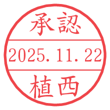 オプションの「電子透かし」をチェックし[生成]すると、見た目には分からないように、UNIXタイムスタンプを識別情報としてPNG形式の日付印に埋め込みます。 日付スタンプメーカーの使い方「部署」「名前」は最大8文字まで入力が可能です。「スタンプの色」を選択し、[生成]ボタン押下で印影画像が更新され、背景を透明に設定したPNG形式とPDF形式の印影画像がリンクからダウンロードできます。 オプションの「電子透かし」は、その性格上日付印ととても相性の良い付加サービスです。 別ページの「タイムスタンプと電子透かし」でも詳しく解説しますが、このオプションを追加することで、日付印が生成された日時に確かにその印が存在していることが証明されます。 ![]() 植西さんの電子印鑑が作れます。社内でのデータ書類閲覧確認用など、認印的な使い方のできる電子印鑑が作れます。 ![]() 古代文字で落款印が作れます。「落款スタンプメーカー」で作品を引き立たせる落款印が作れます。
