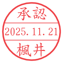 オプションの「電子透かし」をチェックし[生成]すると、見た目には分からないように、UNIXタイムスタンプを識別情報としてPNG形式の日付印に埋め込みます。 日付スタンプメーカーの使い方「部署」「名前」は最大8文字まで入力が可能です。「スタンプの色」を選択し、[生成]ボタン押下で印影画像が更新され、背景を透明に設定したPNG形式とPDF形式の印影画像がリンクからダウンロードできます。 オプションの「電子透かし」は、その性格上日付印ととても相性の良い付加サービスです。 別ページの「タイムスタンプと電子透かし」でも詳しく解説しますが、このオプションを追加することで、日付印が生成された日時に確かにその印が存在していることが証明されます。 ![]() 楓井さんの電子印鑑が作れます。社内でのデータ書類閲覧確認用など、認印的な使い方のできる電子印鑑が作れます。 ![]() 古代文字で落款印が作れます。「落款スタンプメーカー」で作品を引き立たせる落款印が作れます。