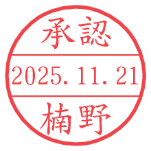 オプションの「電子透かし」をチェックし[生成]すると、見た目には分からないように、UNIXタイムスタンプを識別情報としてPNG形式の日付印に埋め込みます。 日付スタンプメーカーの使い方「部署」「名前」は最大8文字まで入力が可能です。「スタンプの色」を選択し、[生成]ボタン押下で印影画像が更新され、背景を透明に設定したPNG形式とPDF形式の印影画像がリンクからダウンロードできます。 オプションの「電子透かし」は、その性格上日付印ととても相性の良い付加サービスです。 別ページの「タイムスタンプと電子透かし」でも詳しく解説しますが、このオプションを追加することで、日付印が生成された日時に確かにその印が存在していることが証明されます。 ![]() 楠野さんの電子印鑑が作れます。社内でのデータ書類閲覧確認用など、認印的な使い方のできる電子印鑑が作れます。 ![]() 古代文字で落款印が作れます。「落款スタンプメーカー」で作品を引き立たせる落款印が作れます。