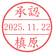 オプションの「電子透かし」をチェックし[生成]すると、見た目には分からないように、UNIXタイムスタンプを識別情報としてPNG形式の日付印に埋め込みます。 日付スタンプメーカーの使い方「部署」「名前」は最大8文字まで入力が可能です。「スタンプの色」を選択し、[生成]ボタン押下で印影画像が更新され、背景を透明に設定したPNG形式とPDF形式の印影画像がリンクからダウンロードできます。 オプションの「電子透かし」は、その性格上日付印ととても相性の良い付加サービスです。 別ページの「タイムスタンプと電子透かし」でも詳しく解説しますが、このオプションを追加することで、日付印が生成された日時に確かにその印が存在していることが証明されます。 ![]() 槙原さんの電子印鑑が作れます。社内でのデータ書類閲覧確認用など、認印的な使い方のできる電子印鑑が作れます。 ![]() 古代文字で落款印が作れます。「落款スタンプメーカー」で作品を引き立たせる落款印が作れます。