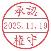 オプションの「電子透かし」をチェックし[生成]すると、見た目には分からないように、UNIXタイムスタンプを識別情報としてPNG形式の日付印に埋め込みます。 日付スタンプメーカーの使い方「部署」「名前」は最大8文字まで入力が可能です。「スタンプの色」を選択し、[生成]ボタン押下で印影画像が更新され、背景を透明に設定したPNG形式とPDF形式の印影画像がリンクからダウンロードできます。 オプションの「電子透かし」は、その性格上日付印ととても相性の良い付加サービスです。 別ページの「タイムスタンプと電子透かし」でも詳しく解説しますが、このオプションを追加することで、日付印が生成された日時に確かにその印が存在していることが証明されます。 ![]() 権守さんの電子印鑑が作れます。社内でのデータ書類閲覧確認用など、認印的な使い方のできる電子印鑑が作れます。 ![]() 古代文字で落款印が作れます。「落款スタンプメーカー」で作品を引き立たせる落款印が作れます。
