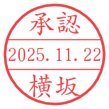 オプションの「電子透かし」をチェックし[生成]すると、見た目には分からないように、UNIXタイムスタンプを識別情報としてPNG形式の日付印に埋め込みます。 日付スタンプメーカーの使い方「部署」「名前」は最大8文字まで入力が可能です。「スタンプの色」を選択し、[生成]ボタン押下で印影画像が更新され、背景を透明に設定したPNG形式とPDF形式の印影画像がリンクからダウンロードできます。 オプションの「電子透かし」は、その性格上日付印ととても相性の良い付加サービスです。 別ページの「タイムスタンプと電子透かし」でも詳しく解説しますが、このオプションを追加することで、日付印が生成された日時に確かにその印が存在していることが証明されます。 ![]() 横坂さんの電子印鑑が作れます。社内でのデータ書類閲覧確認用など、認印的な使い方のできる電子印鑑が作れます。 ![]() 古代文字で落款印が作れます。「落款スタンプメーカー」で作品を引き立たせる落款印が作れます。
