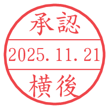 オプションの「電子透かし」をチェックし[生成]すると、見た目には分からないように、UNIXタイムスタンプを識別情報としてPNG形式の日付印に埋め込みます。 日付スタンプメーカーの使い方「部署」「名前」は最大8文字まで入力が可能です。「スタンプの色」を選択し、[生成]ボタン押下で印影画像が更新され、背景を透明に設定したPNG形式とPDF形式の印影画像がリンクからダウンロードできます。 オプションの「電子透かし」は、その性格上日付印ととても相性の良い付加サービスです。 別ページの「タイムスタンプと電子透かし」でも詳しく解説しますが、このオプションを追加することで、日付印が生成された日時に確かにその印が存在していることが証明されます。 ![]() 横後さんの電子印鑑が作れます。社内でのデータ書類閲覧確認用など、認印的な使い方のできる電子印鑑が作れます。 ![]() 古代文字で落款印が作れます。「落款スタンプメーカー」で作品を引き立たせる落款印が作れます。