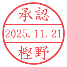 オプションの「電子透かし」をチェックし[生成]すると、見た目には分からないように、UNIXタイムスタンプを識別情報としてPNG形式の日付印に埋め込みます。 日付スタンプメーカーの使い方「部署」「名前」は最大8文字まで入力が可能です。「スタンプの色」を選択し、[生成]ボタン押下で印影画像が更新され、背景を透明に設定したPNG形式とPDF形式の印影画像がリンクからダウンロードできます。 オプションの「電子透かし」は、その性格上日付印ととても相性の良い付加サービスです。 別ページの「タイムスタンプと電子透かし」でも詳しく解説しますが、このオプションを追加することで、日付印が生成された日時に確かにその印が存在していることが証明されます。 ![]() 樫野さんの電子印鑑が作れます。社内でのデータ書類閲覧確認用など、認印的な使い方のできる電子印鑑が作れます。 ![]() 古代文字で落款印が作れます。「落款スタンプメーカー」で作品を引き立たせる落款印が作れます。