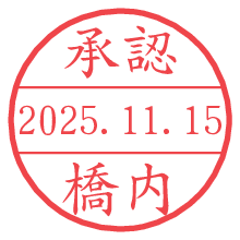 オプションの「電子透かし」をチェックし[生成]すると、見た目には分からないように、UNIXタイムスタンプを識別情報としてPNG形式の日付印に埋め込みます。 日付スタンプメーカーの使い方「部署」「名前」は最大8文字まで入力が可能です。「スタンプの色」を選択し、[生成]ボタン押下で印影画像が更新され、背景を透明に設定したPNG形式とPDF形式の印影画像がリンクからダウンロードできます。 オプションの「電子透かし」は、その性格上日付印ととても相性の良い付加サービスです。 別ページの「タイムスタンプと電子透かし」でも詳しく解説しますが、このオプションを追加することで、日付印が生成された日時に確かにその印が存在していることが証明されます。 ![]() 橋内さんの電子印鑑が作れます。社内でのデータ書類閲覧確認用など、認印的な使い方のできる電子印鑑が作れます。 ![]() 古代文字で落款印が作れます。「落款スタンプメーカー」で作品を引き立たせる落款印が作れます。