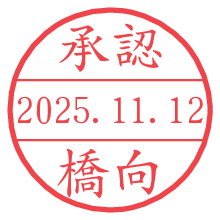 オプションの「電子透かし」をチェックし[生成]すると、見た目には分からないように、UNIXタイムスタンプを識別情報としてPNG形式の日付印に埋め込みます。 日付スタンプメーカーの使い方「部署」「名前」は最大8文字まで入力が可能です。「スタンプの色」を選択し、[生成]ボタン押下で印影画像が更新され、背景を透明に設定したPNG形式とPDF形式の印影画像がリンクからダウンロードできます。 オプションの「電子透かし」は、その性格上日付印ととても相性の良い付加サービスです。 別ページの「タイムスタンプと電子透かし」でも詳しく解説しますが、このオプションを追加することで、日付印が生成された日時に確かにその印が存在していることが証明されます。 ![]() 橋向さんの電子印鑑が作れます。社内でのデータ書類閲覧確認用など、認印的な使い方のできる電子印鑑が作れます。 ![]() 古代文字で落款印が作れます。「落款スタンプメーカー」で作品を引き立たせる落款印が作れます。