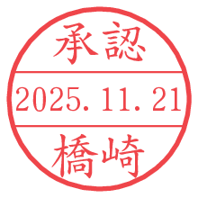 オプションの「電子透かし」をチェックし[生成]すると、見た目には分からないように、UNIXタイムスタンプを識別情報としてPNG形式の日付印に埋め込みます。 日付スタンプメーカーの使い方「部署」「名前」は最大8文字まで入力が可能です。「スタンプの色」を選択し、[生成]ボタン押下で印影画像が更新され、背景を透明に設定したPNG形式とPDF形式の印影画像がリンクからダウンロードできます。 オプションの「電子透かし」は、その性格上日付印ととても相性の良い付加サービスです。 別ページの「タイムスタンプと電子透かし」でも詳しく解説しますが、このオプションを追加することで、日付印が生成された日時に確かにその印が存在していることが証明されます。 ![]() 橋崎さんの電子印鑑が作れます。社内でのデータ書類閲覧確認用など、認印的な使い方のできる電子印鑑が作れます。 ![]() 古代文字で落款印が作れます。「落款スタンプメーカー」で作品を引き立たせる落款印が作れます。