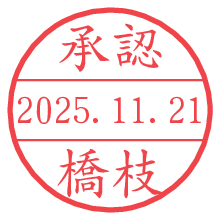 オプションの「電子透かし」をチェックし[生成]すると、見た目には分からないように、UNIXタイムスタンプを識別情報としてPNG形式の日付印に埋め込みます。 日付スタンプメーカーの使い方「部署」「名前」は最大8文字まで入力が可能です。「スタンプの色」を選択し、[生成]ボタン押下で印影画像が更新され、背景を透明に設定したPNG形式とPDF形式の印影画像がリンクからダウンロードできます。 オプションの「電子透かし」は、その性格上日付印ととても相性の良い付加サービスです。 別ページの「タイムスタンプと電子透かし」でも詳しく解説しますが、このオプションを追加することで、日付印が生成された日時に確かにその印が存在していることが証明されます。 ![]() 橋枝さんの電子印鑑が作れます。社内でのデータ書類閲覧確認用など、認印的な使い方のできる電子印鑑が作れます。 ![]() 古代文字で落款印が作れます。「落款スタンプメーカー」で作品を引き立たせる落款印が作れます。
