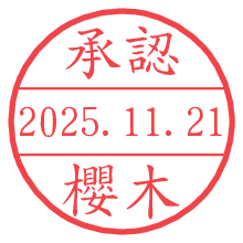 オプションの「電子透かし」をチェックし[生成]すると、見た目には分からないように、UNIXタイムスタンプを識別情報としてPNG形式の日付印に埋め込みます。 日付スタンプメーカーの使い方「部署」「名前」は最大8文字まで入力が可能です。「スタンプの色」を選択し、[生成]ボタン押下で印影画像が更新され、背景を透明に設定したPNG形式とPDF形式の印影画像がリンクからダウンロードできます。 オプションの「電子透かし」は、その性格上日付印ととても相性の良い付加サービスです。 別ページの「タイムスタンプと電子透かし」でも詳しく解説しますが、このオプションを追加することで、日付印が生成された日時に確かにその印が存在していることが証明されます。 ![]() 櫻木さんの電子印鑑が作れます。社内でのデータ書類閲覧確認用など、認印的な使い方のできる電子印鑑が作れます。 ![]() 古代文字で落款印が作れます。「落款スタンプメーカー」で作品を引き立たせる落款印が作れます。