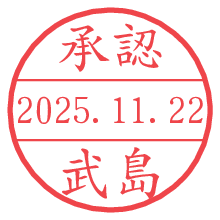 オプションの「電子透かし」をチェックし[生成]すると、見た目には分からないように、UNIXタイムスタンプを識別情報としてPNG形式の日付印に埋め込みます。 日付スタンプメーカーの使い方「部署」「名前」は最大8文字まで入力が可能です。「スタンプの色」を選択し、[生成]ボタン押下で印影画像が更新され、背景を透明に設定したPNG形式とPDF形式の印影画像がリンクからダウンロードできます。 オプションの「電子透かし」は、その性格上日付印ととても相性の良い付加サービスです。 別ページの「タイムスタンプと電子透かし」でも詳しく解説しますが、このオプションを追加することで、日付印が生成された日時に確かにその印が存在していることが証明されます。 ![]() 武島さんの電子印鑑が作れます。社内でのデータ書類閲覧確認用など、認印的な使い方のできる電子印鑑が作れます。 ![]() 古代文字で落款印が作れます。「落款スタンプメーカー」で作品を引き立たせる落款印が作れます。