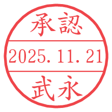 オプションの「電子透かし」をチェックし[生成]すると、見た目には分からないように、UNIXタイムスタンプを識別情報としてPNG形式の日付印に埋め込みます。 日付スタンプメーカーの使い方「部署」「名前」は最大8文字まで入力が可能です。「スタンプの色」を選択し、[生成]ボタン押下で印影画像が更新され、背景を透明に設定したPNG形式とPDF形式の印影画像がリンクからダウンロードできます。 オプションの「電子透かし」は、その性格上日付印ととても相性の良い付加サービスです。 別ページの「タイムスタンプと電子透かし」でも詳しく解説しますが、このオプションを追加することで、日付印が生成された日時に確かにその印が存在していることが証明されます。 ![]() 武永さんの電子印鑑が作れます。社内でのデータ書類閲覧確認用など、認印的な使い方のできる電子印鑑が作れます。 ![]() 古代文字で落款印が作れます。「落款スタンプメーカー」で作品を引き立たせる落款印が作れます。