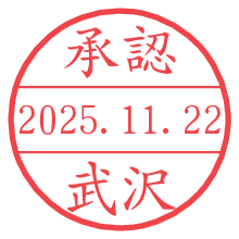 オプションの「電子透かし」をチェックし[生成]すると、見た目には分からないように、UNIXタイムスタンプを識別情報としてPNG形式の日付印に埋め込みます。 日付スタンプメーカーの使い方「部署」「名前」は最大8文字まで入力が可能です。「スタンプの色」を選択し、[生成]ボタン押下で印影画像が更新され、背景を透明に設定したPNG形式とPDF形式の印影画像がリンクからダウンロードできます。 オプションの「電子透かし」は、その性格上日付印ととても相性の良い付加サービスです。 別ページの「タイムスタンプと電子透かし」でも詳しく解説しますが、このオプションを追加することで、日付印が生成された日時に確かにその印が存在していることが証明されます。 ![]() 武沢さんの電子印鑑が作れます。社内でのデータ書類閲覧確認用など、認印的な使い方のできる電子印鑑が作れます。 ![]() 古代文字で落款印が作れます。「落款スタンプメーカー」で作品を引き立たせる落款印が作れます。
