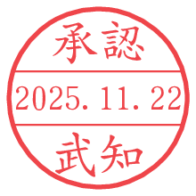オプションの「電子透かし」をチェックし[生成]すると、見た目には分からないように、UNIXタイムスタンプを識別情報としてPNG形式の日付印に埋め込みます。 日付スタンプメーカーの使い方「部署」「名前」は最大8文字まで入力が可能です。「スタンプの色」を選択し、[生成]ボタン押下で印影画像が更新され、背景を透明に設定したPNG形式とPDF形式の印影画像がリンクからダウンロードできます。 オプションの「電子透かし」は、その性格上日付印ととても相性の良い付加サービスです。 別ページの「タイムスタンプと電子透かし」でも詳しく解説しますが、このオプションを追加することで、日付印が生成された日時に確かにその印が存在していることが証明されます。 ![]() 武知さんの電子印鑑が作れます。社内でのデータ書類閲覧確認用など、認印的な使い方のできる電子印鑑が作れます。 ![]() 古代文字で落款印が作れます。「落款スタンプメーカー」で作品を引き立たせる落款印が作れます。