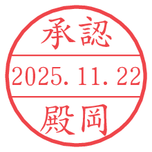 オプションの「電子透かし」をチェックし[生成]すると、見た目には分からないように、UNIXタイムスタンプを識別情報としてPNG形式の日付印に埋め込みます。 日付スタンプメーカーの使い方「部署」「名前」は最大8文字まで入力が可能です。「スタンプの色」を選択し、[生成]ボタン押下で印影画像が更新され、背景を透明に設定したPNG形式とPDF形式の印影画像がリンクからダウンロードできます。 オプションの「電子透かし」は、その性格上日付印ととても相性の良い付加サービスです。 別ページの「タイムスタンプと電子透かし」でも詳しく解説しますが、このオプションを追加することで、日付印が生成された日時に確かにその印が存在していることが証明されます。 ![]() 殿岡さんの電子印鑑が作れます。社内でのデータ書類閲覧確認用など、認印的な使い方のできる電子印鑑が作れます。 ![]() 古代文字で落款印が作れます。「落款スタンプメーカー」で作品を引き立たせる落款印が作れます。